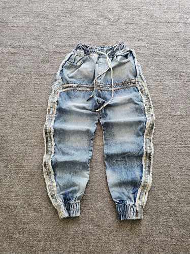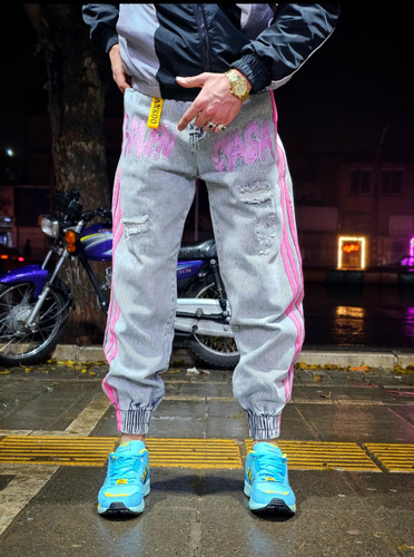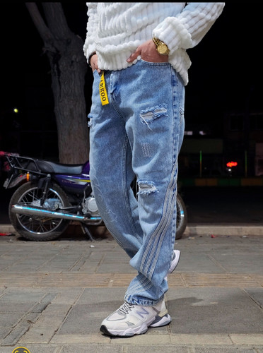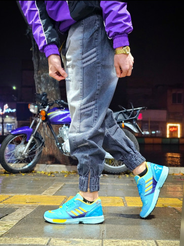 شلوار جاگر بغل داغی خور دمپا کش زیپ رنگ آبی کم رنگ