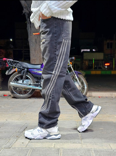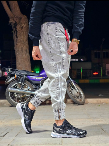 شلوار جاگر بغل داغی خور دمپا کش زیپ رنگ ذغالی سایه دار