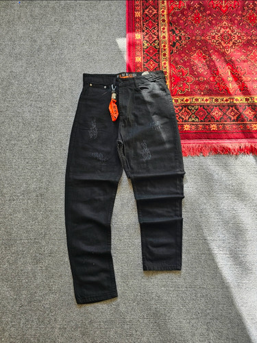 شلوار لی دو ستاره رنگ ذغالی خط قرمز
