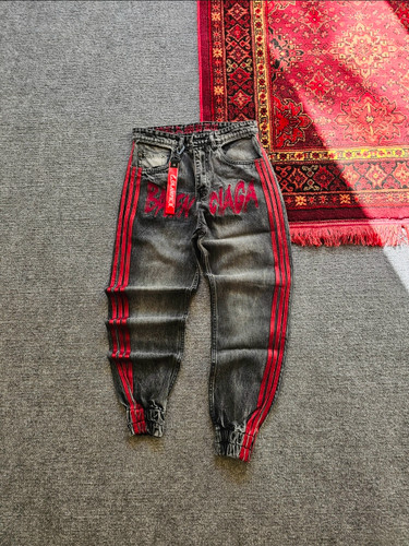 شلوار سه خط بالانسیاگا ذغالی خط قرمز