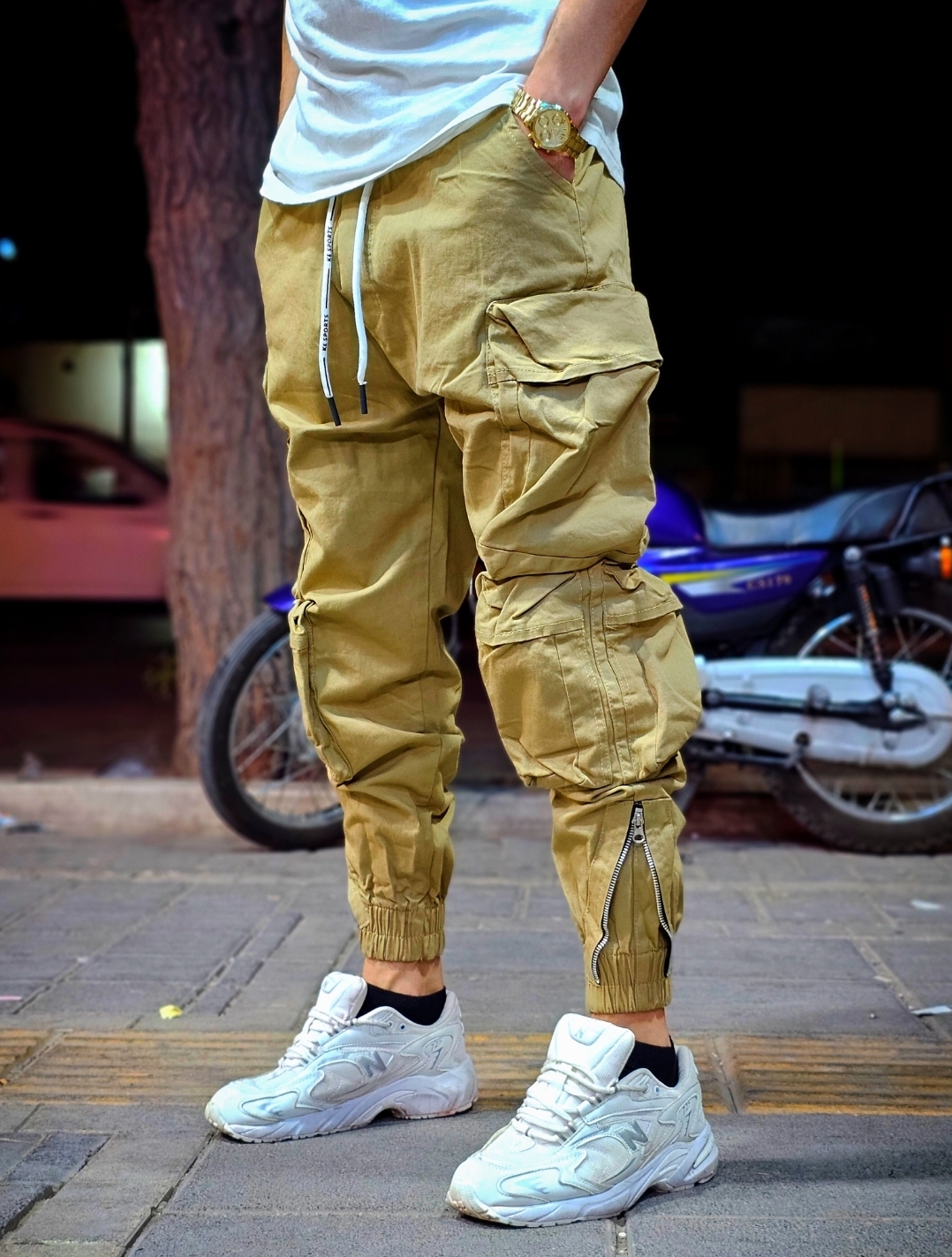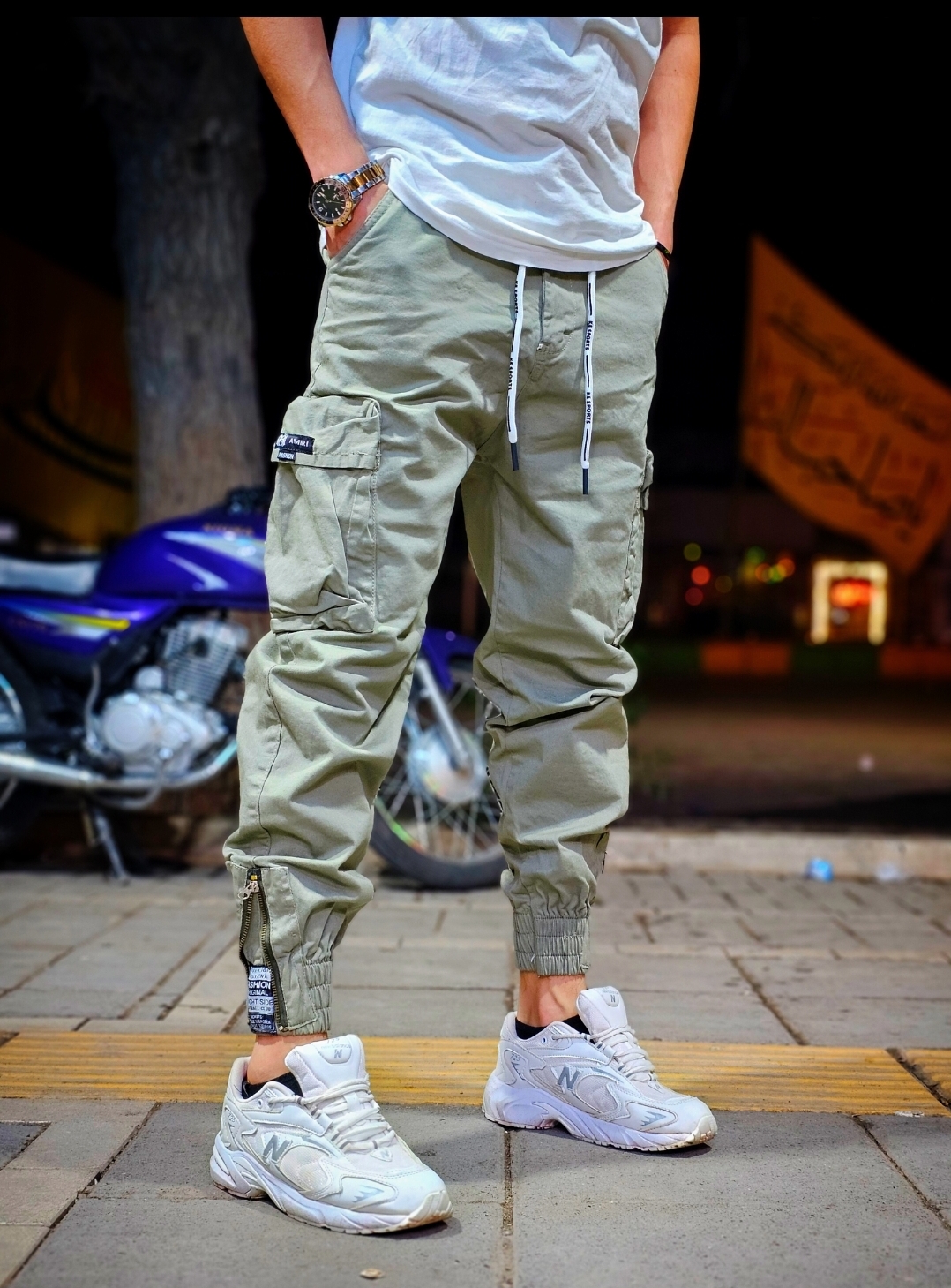 شلوار جاگر بغل داغی خور دمپا کش زیپ رنگ گازوئیلی