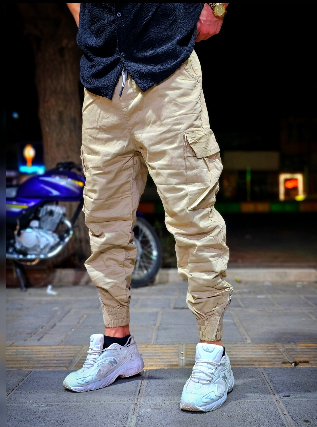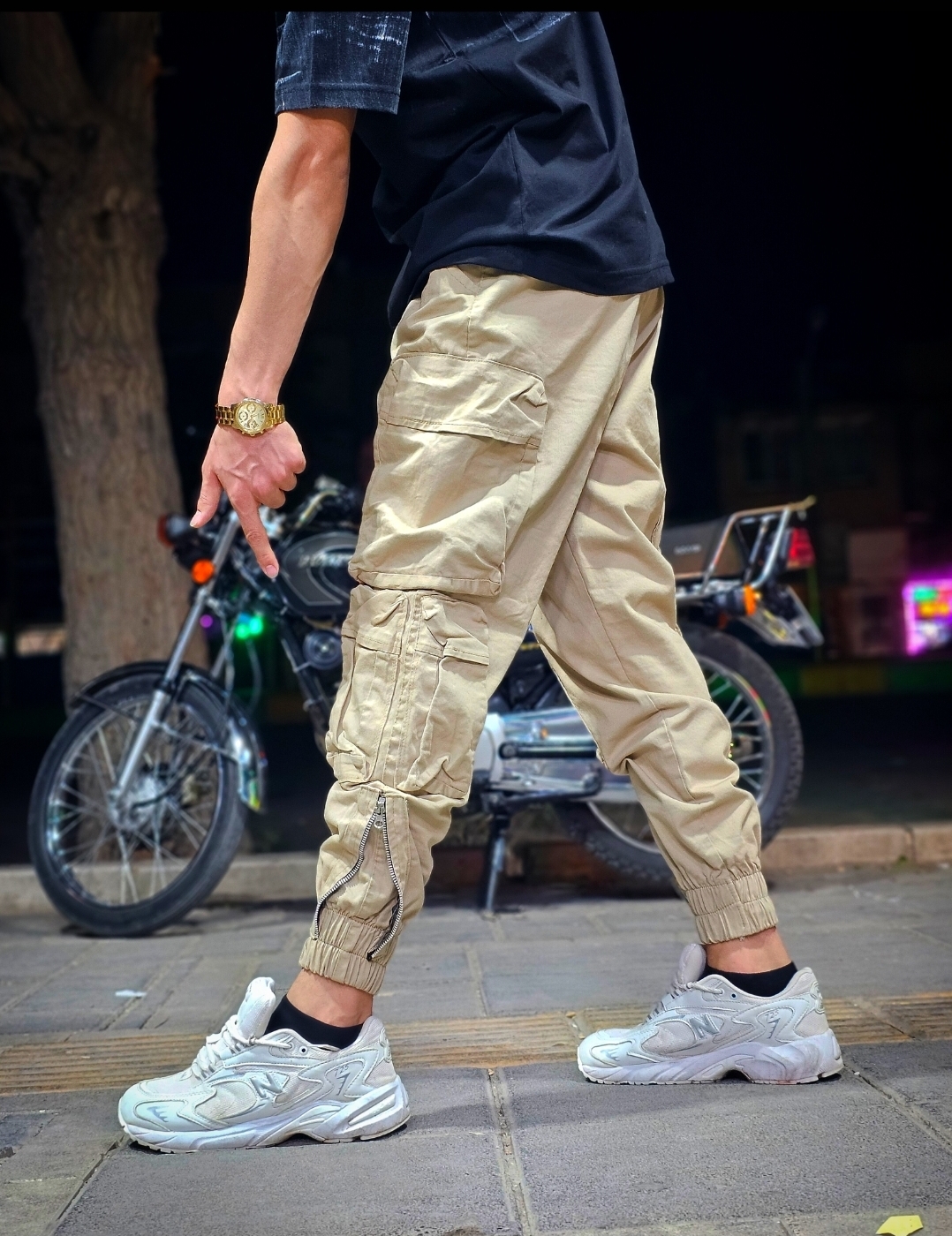 شلوار جاگر بغل داغی خور دمپا کش زیپ رنگ استخونی