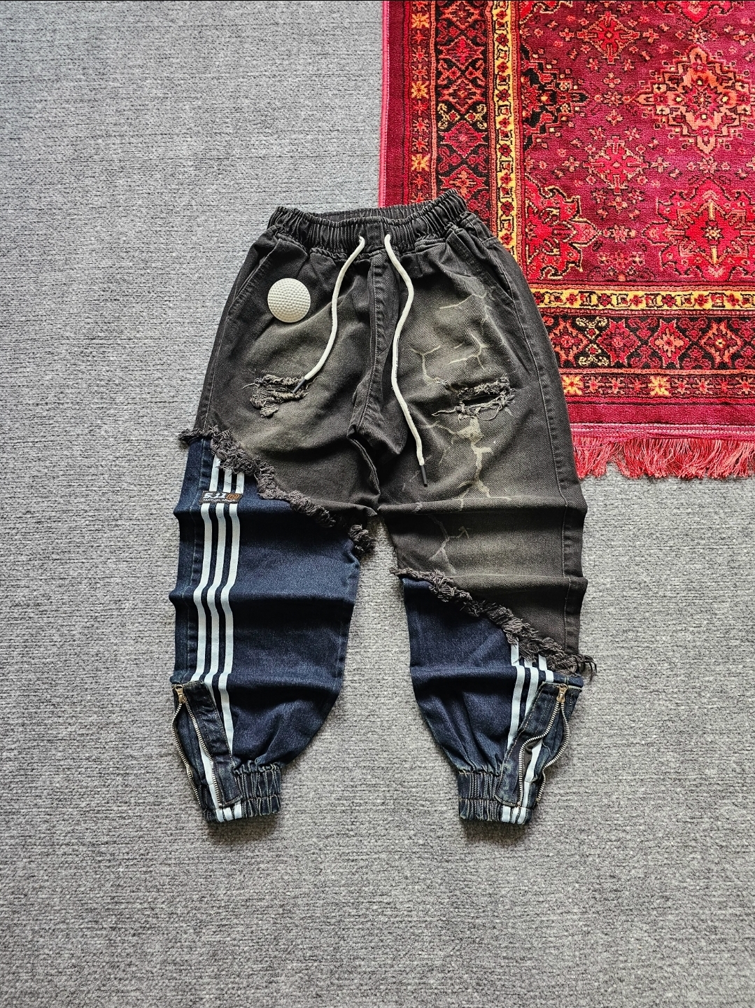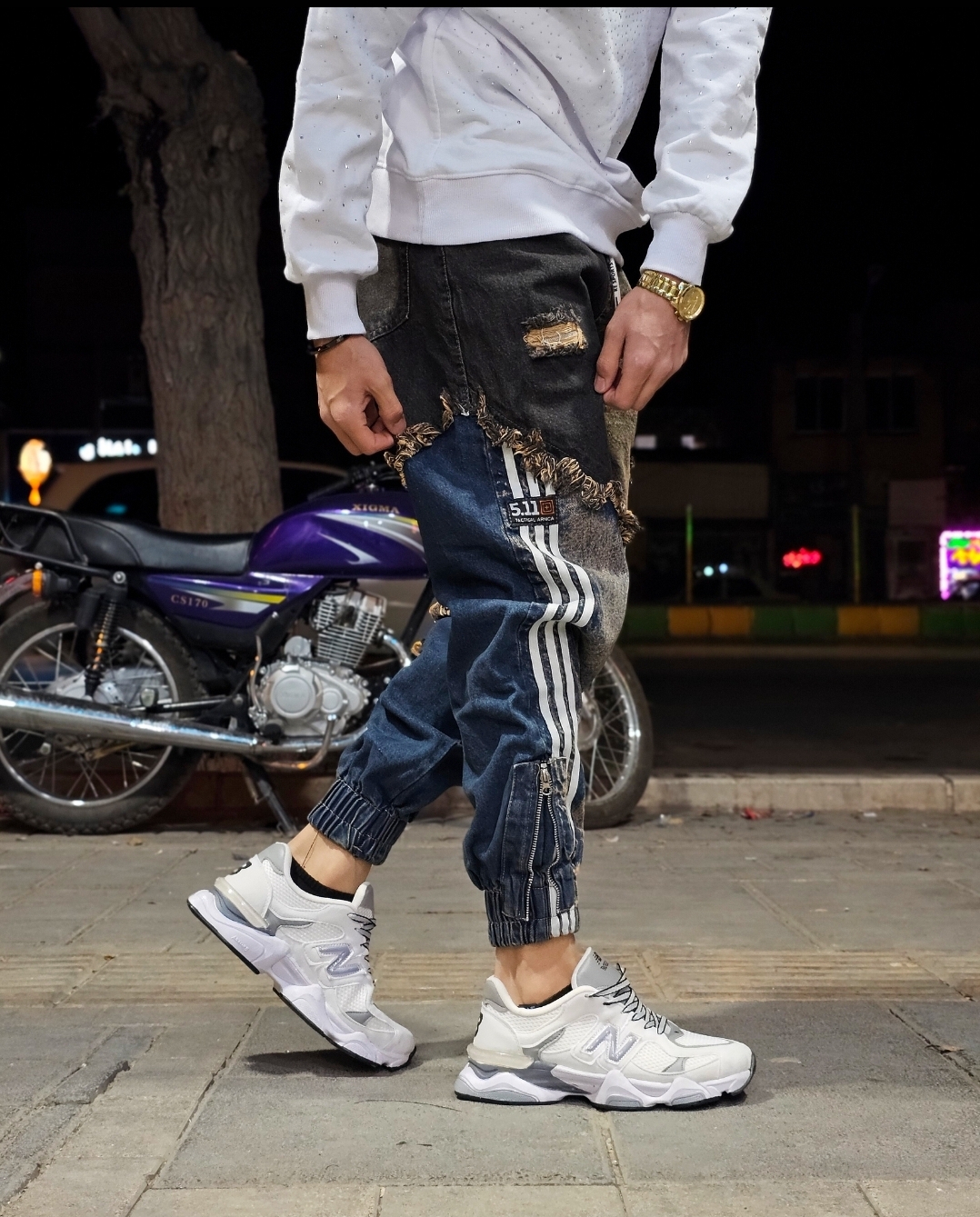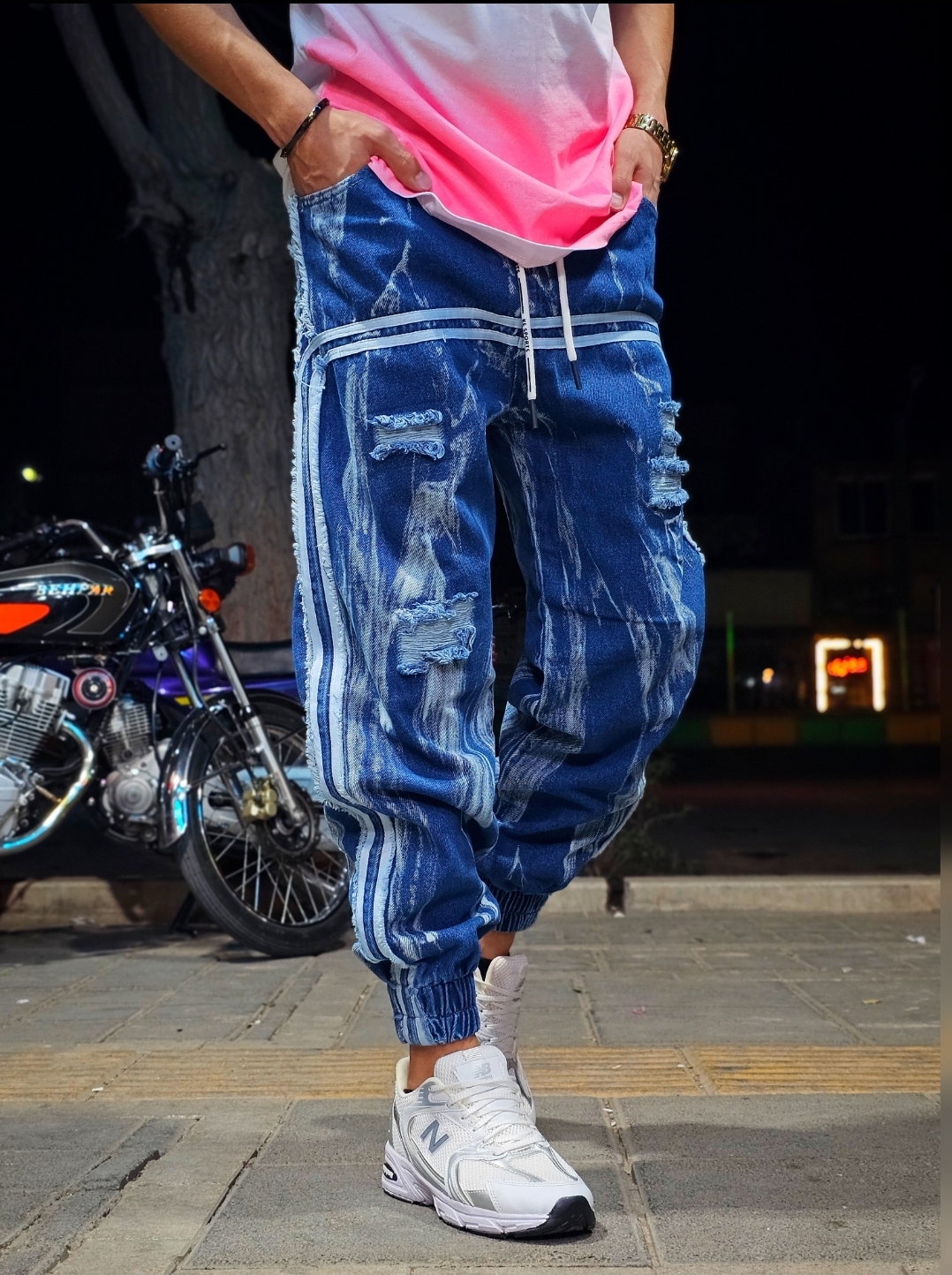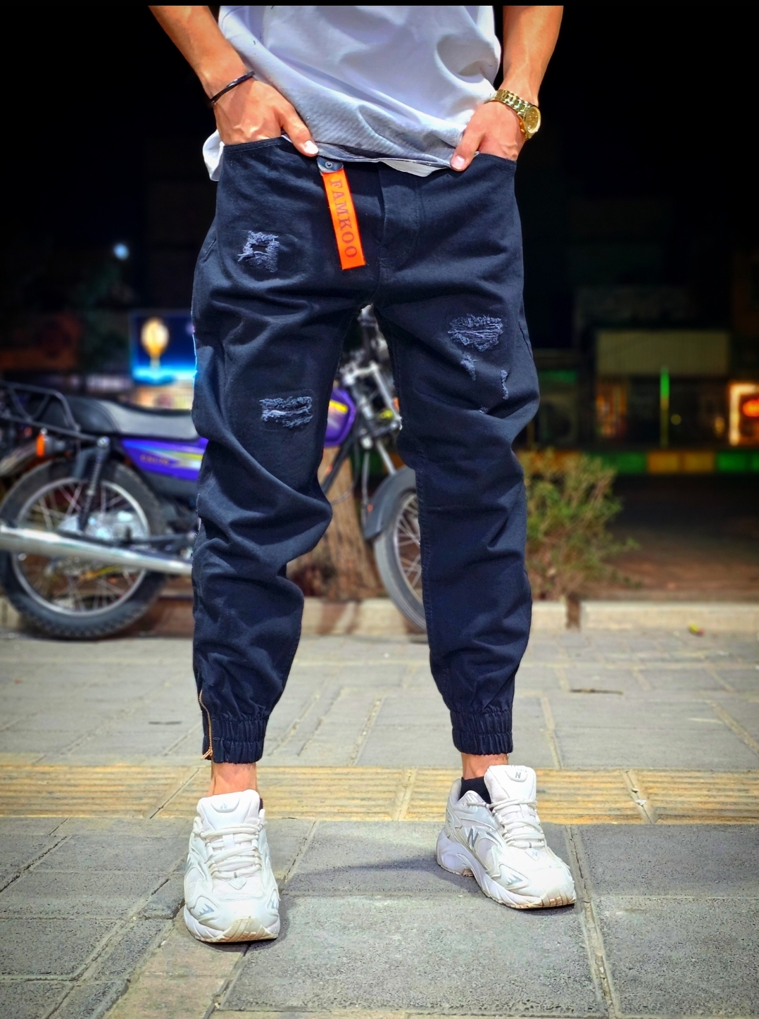 شلوار جاگر بغل داغی خور دمپا کش زیپ رنگ آبی