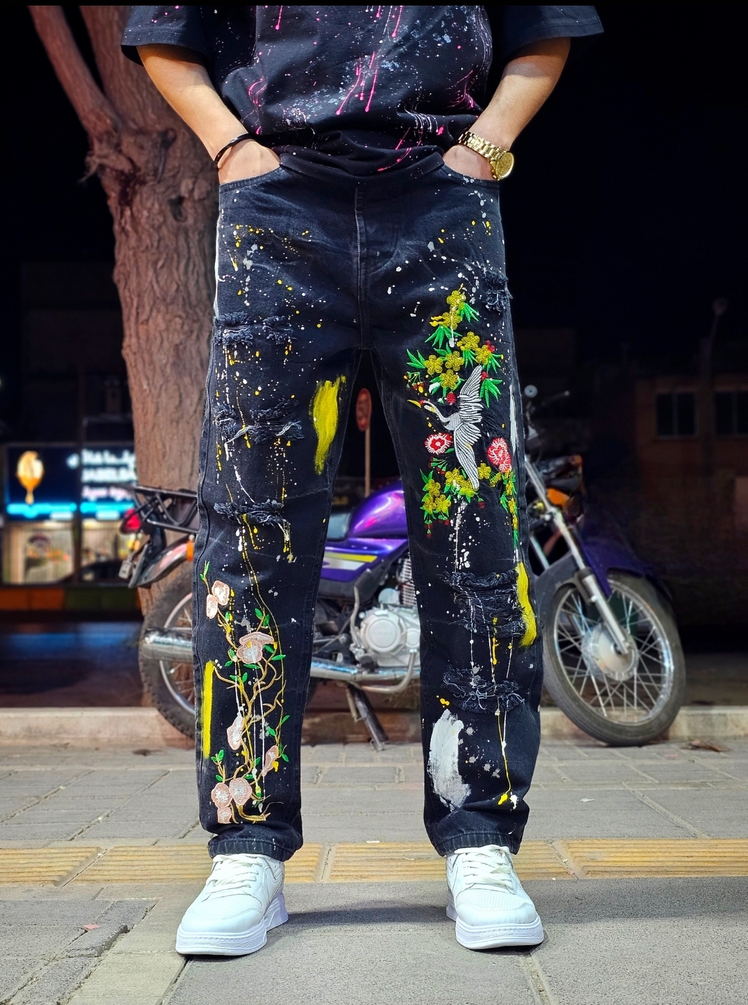 ناموجودشلوار ده جیب ترکیبی پلنگی مشکی