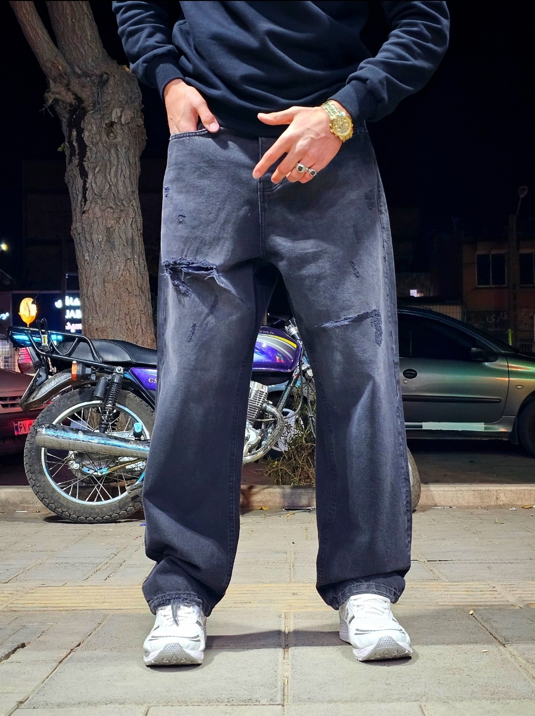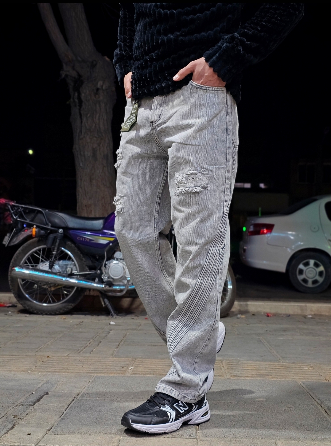 شلوار جین دوخط رنگ ذغالی سایه دار
