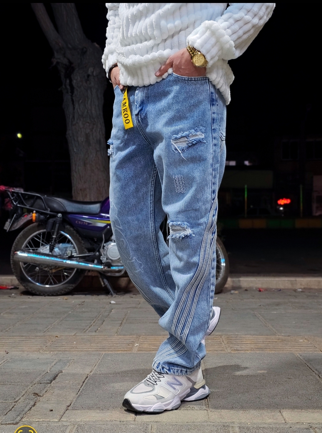شلوار جین دوخط رنگ استخونی خط پلنگی