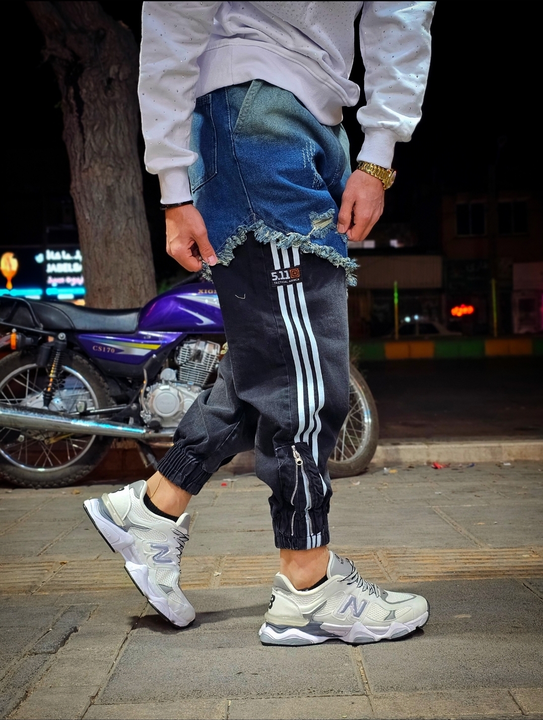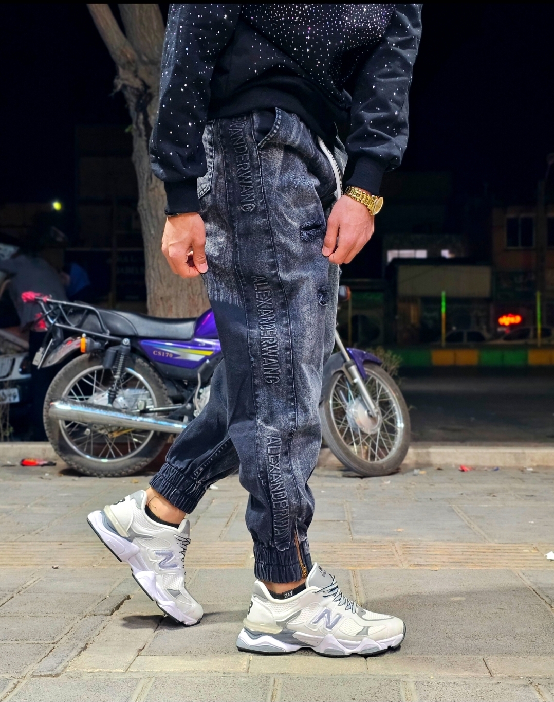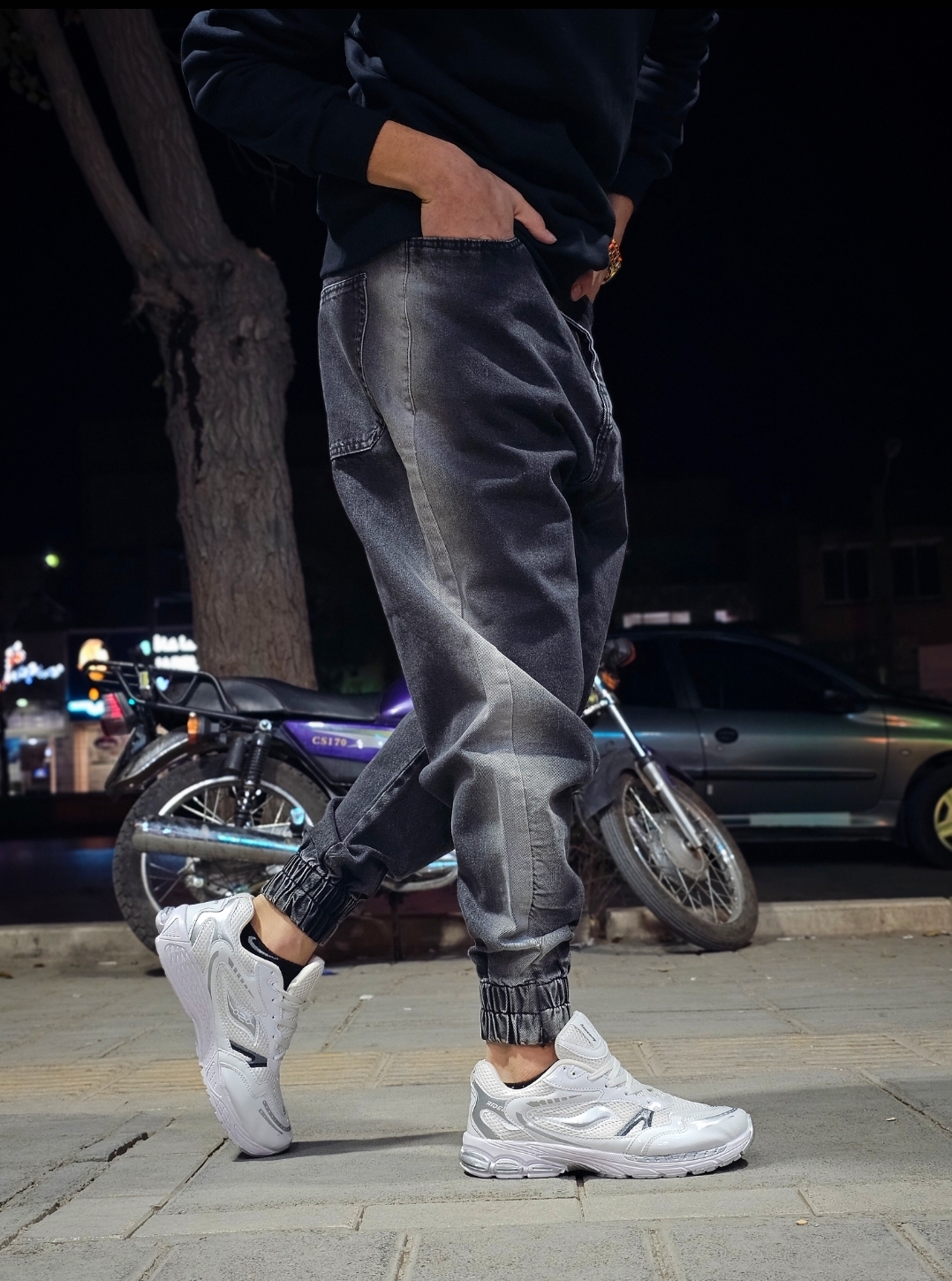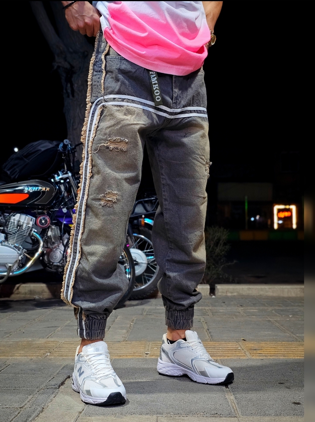 شلوار جاگر بغل داغی خور دمپا کش زیپ رنگ ذغالی سایه دار