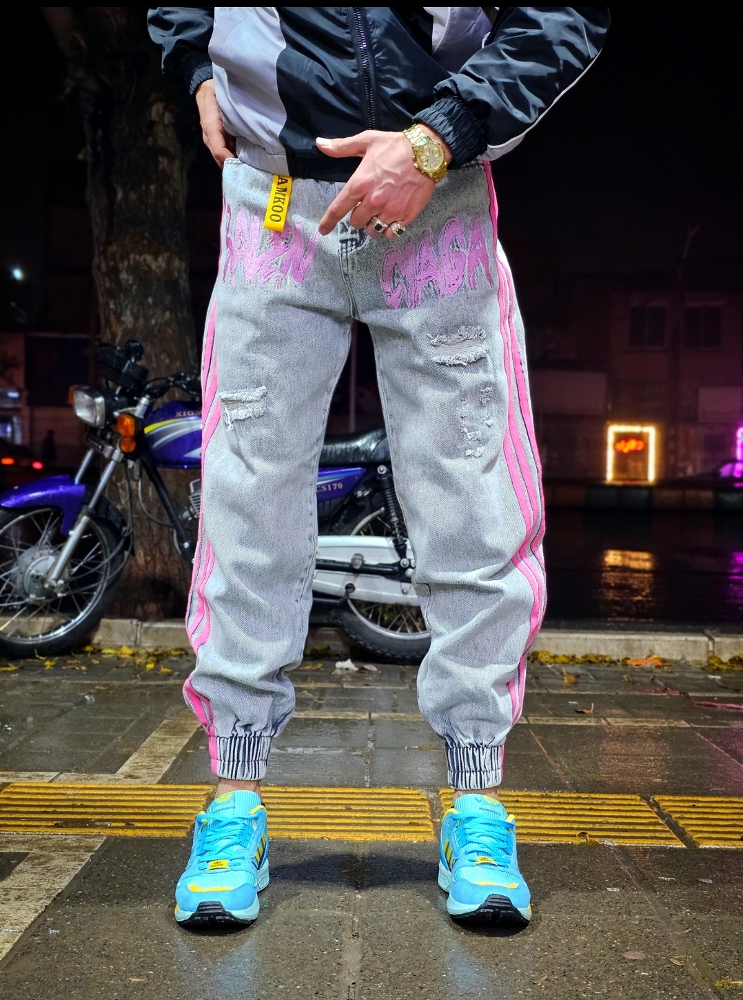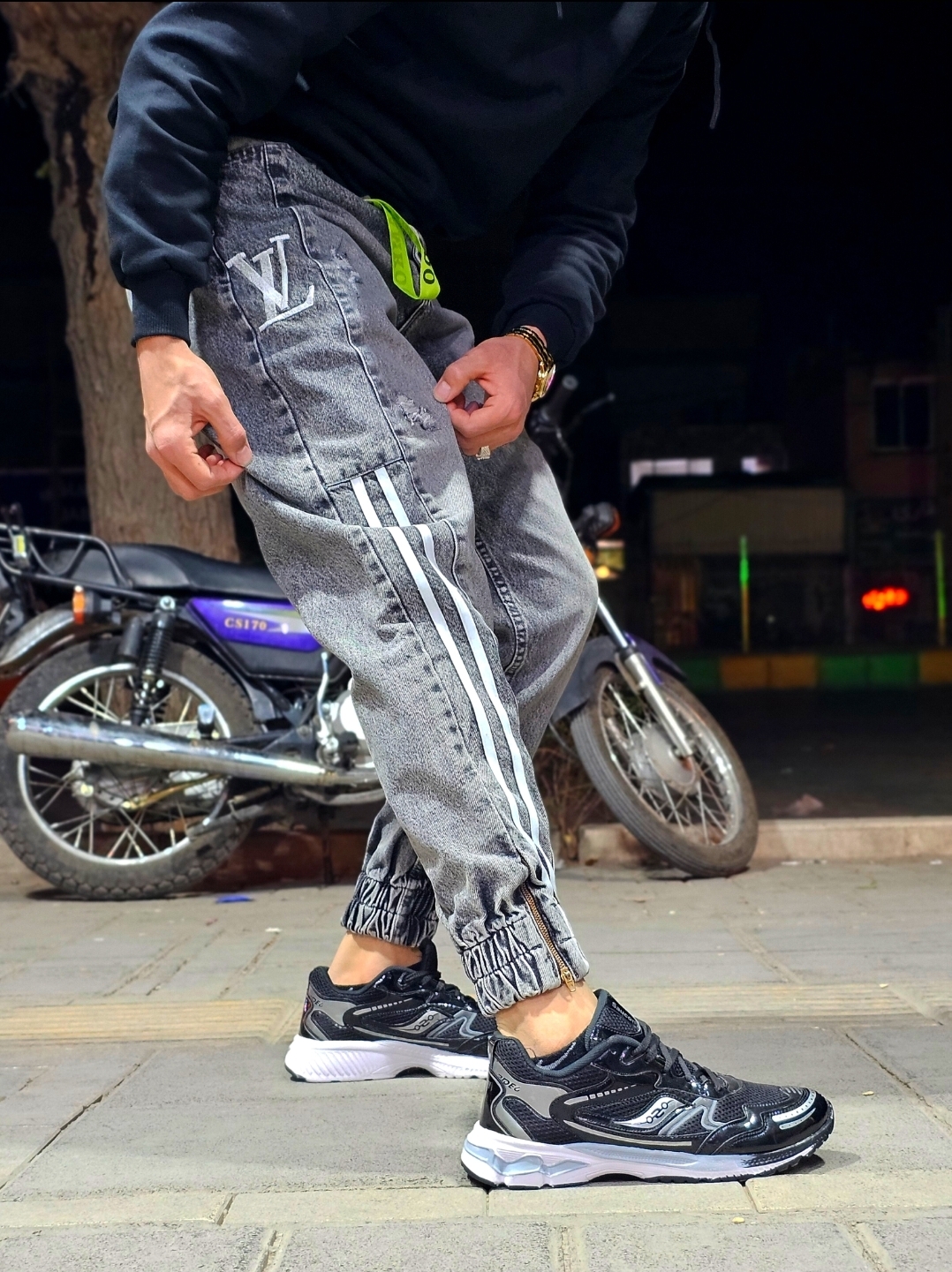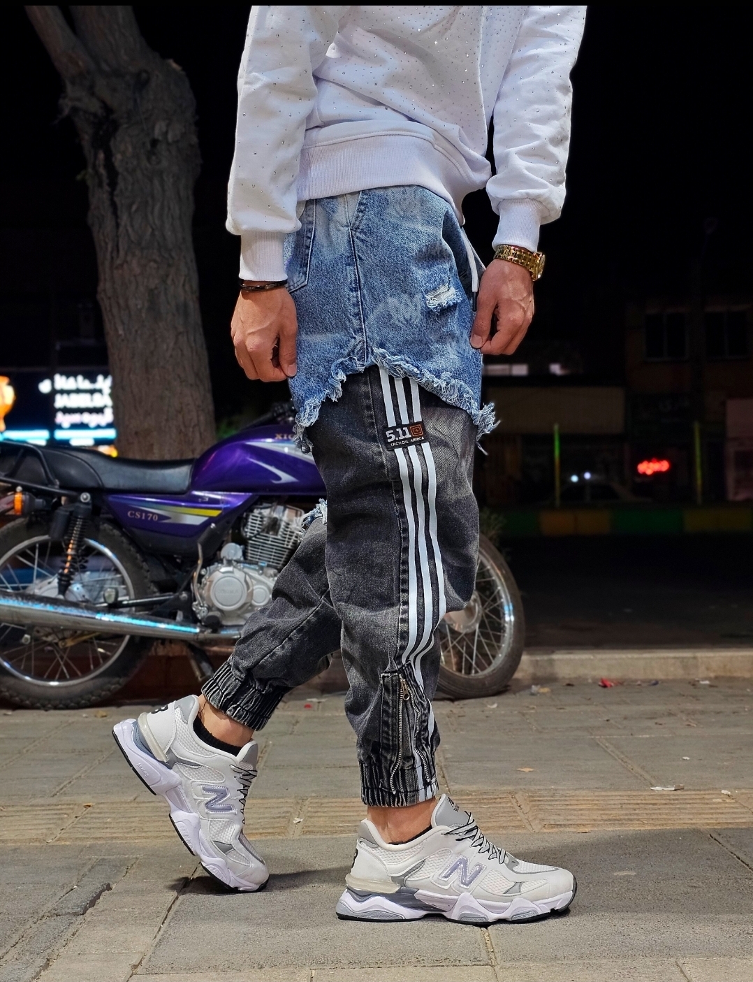 شلوار جاگر بغل داغی خور دمپا کش زیپ رنگ ذغالی سایه دار