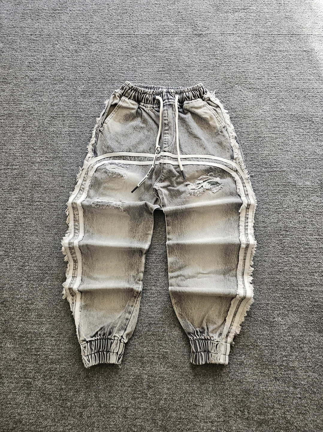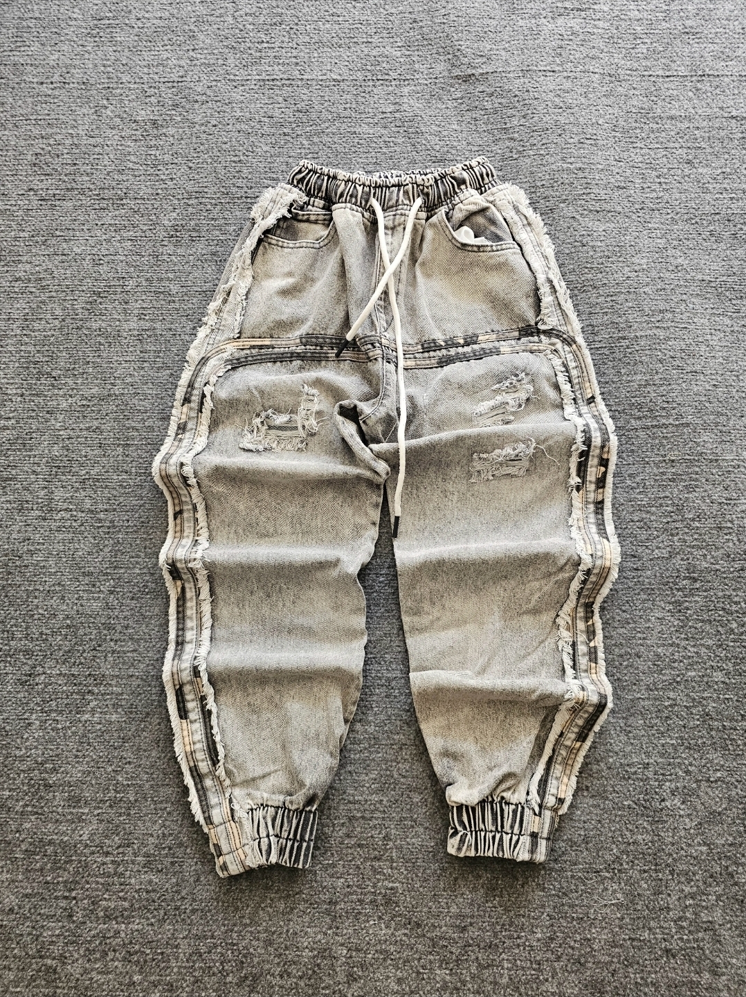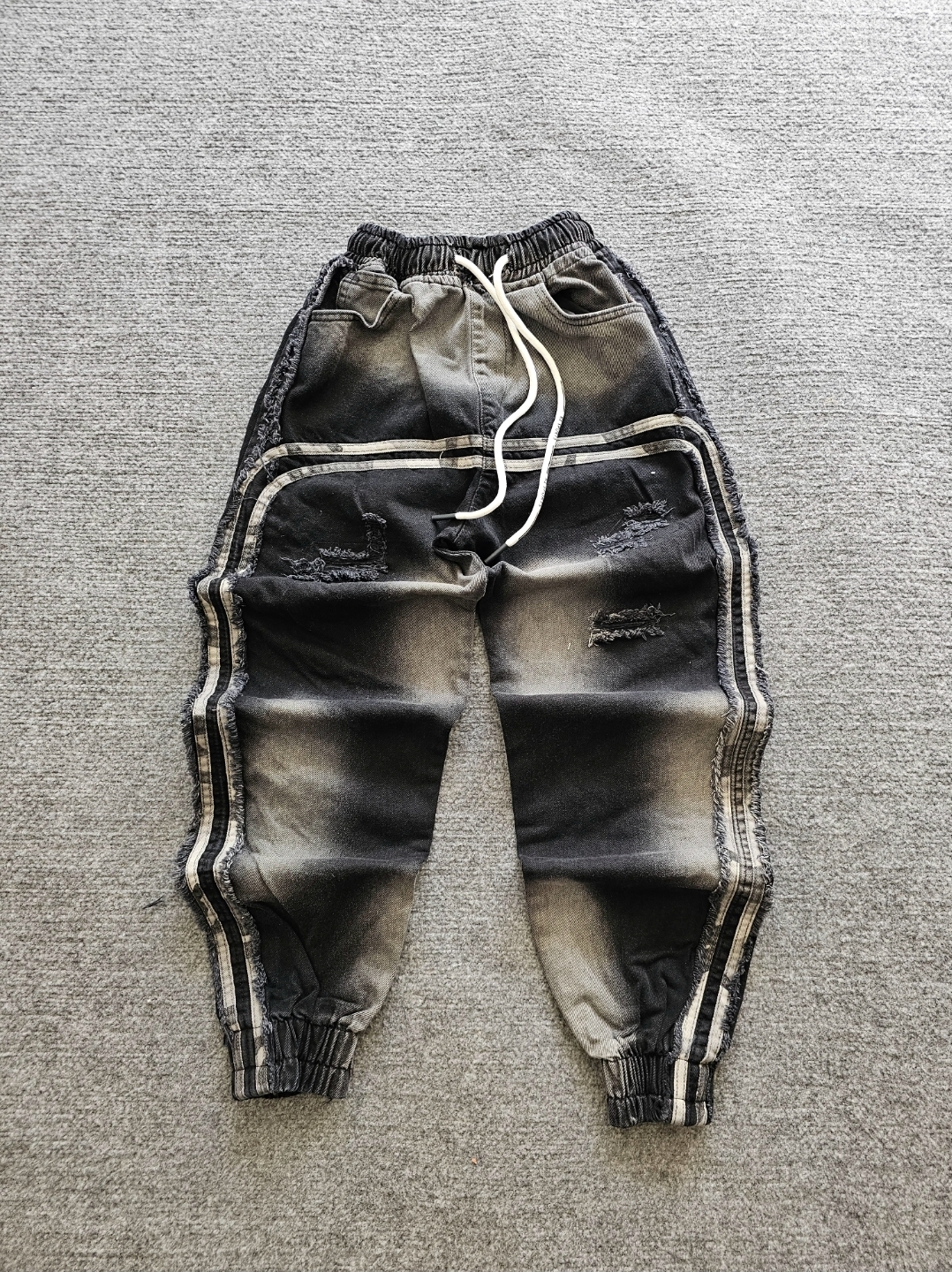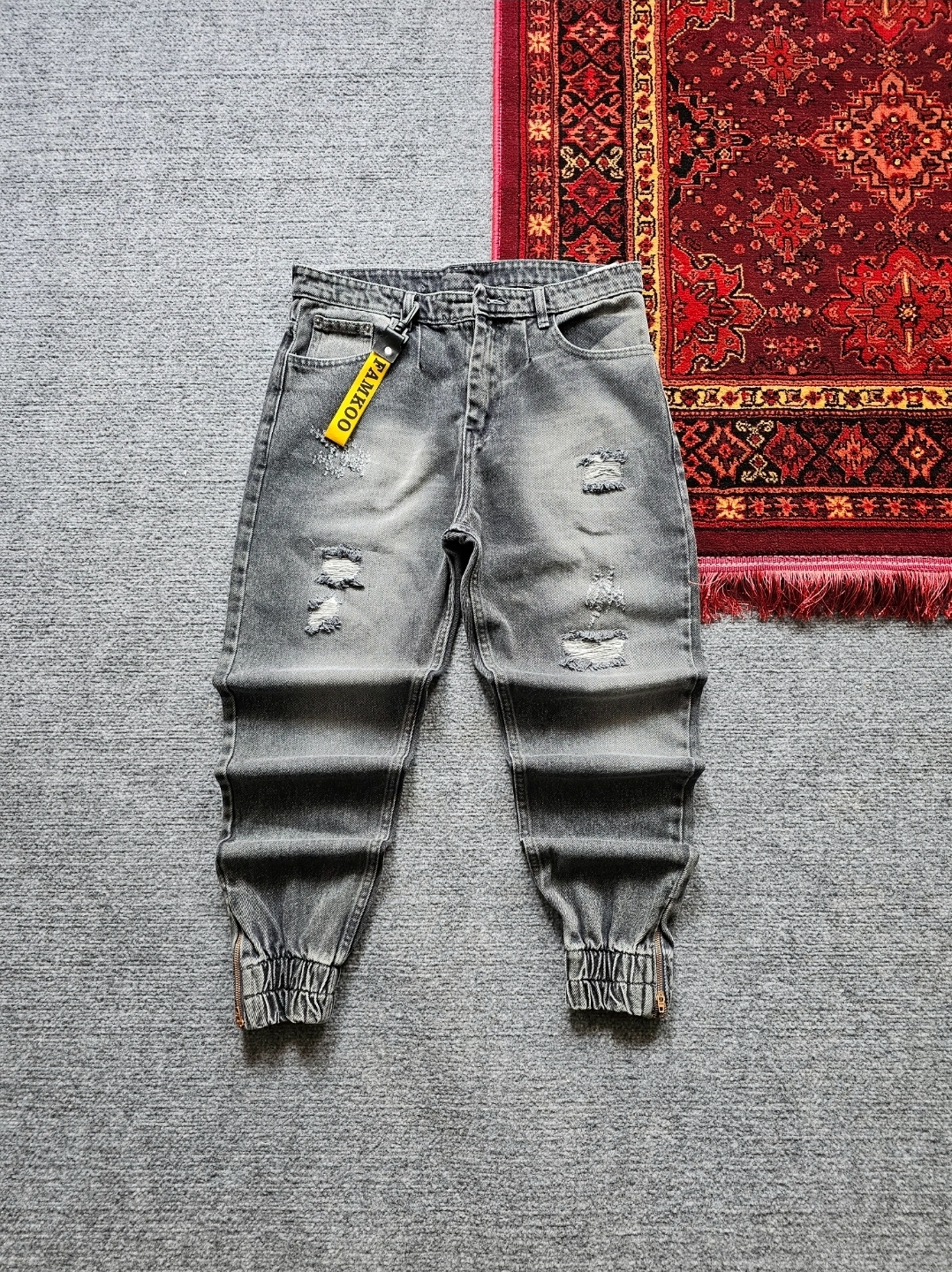 شلوار جاگر بغل داغی خور دمپا کش زیپ رنگ ذغالی سایه دار
