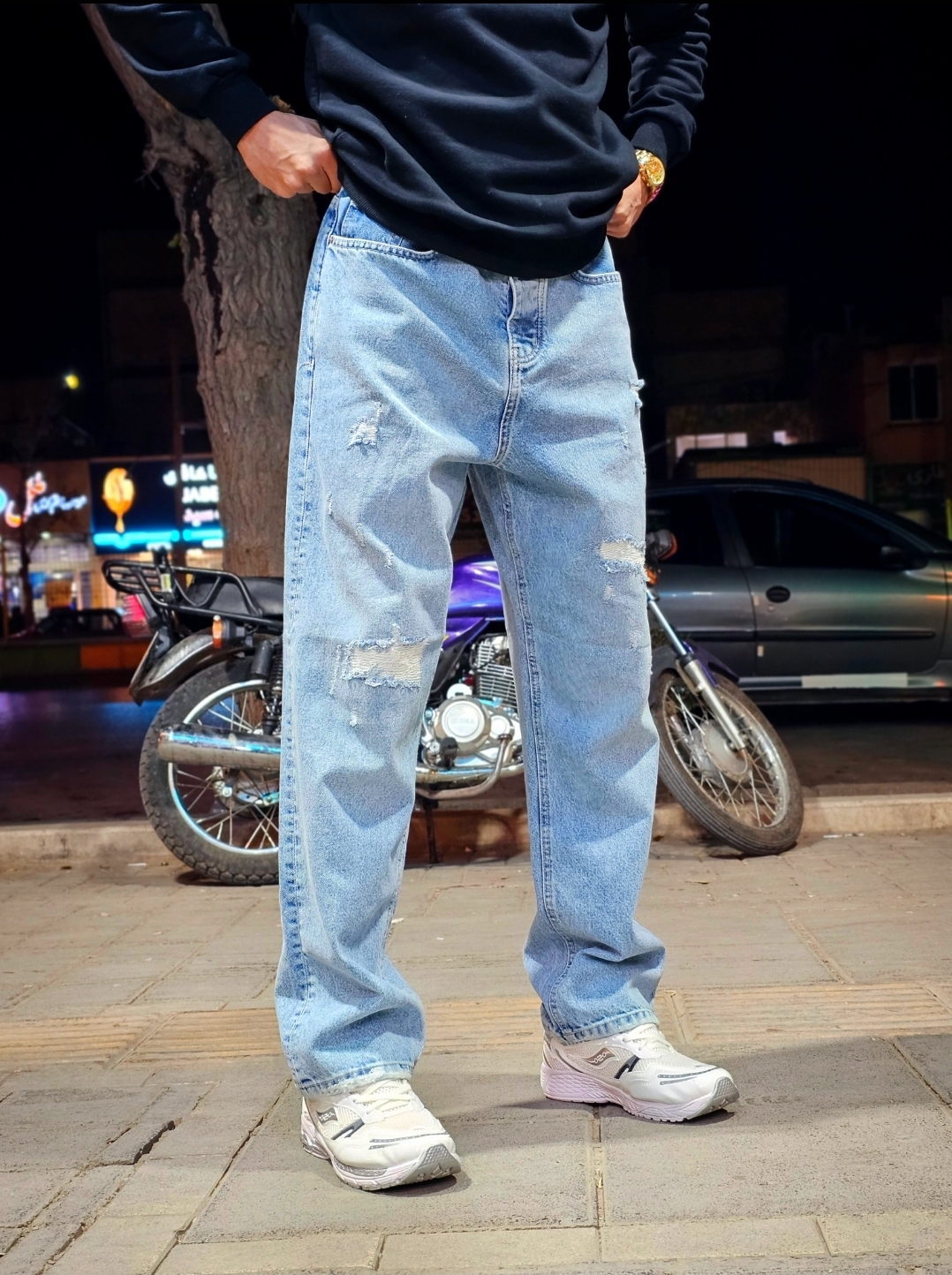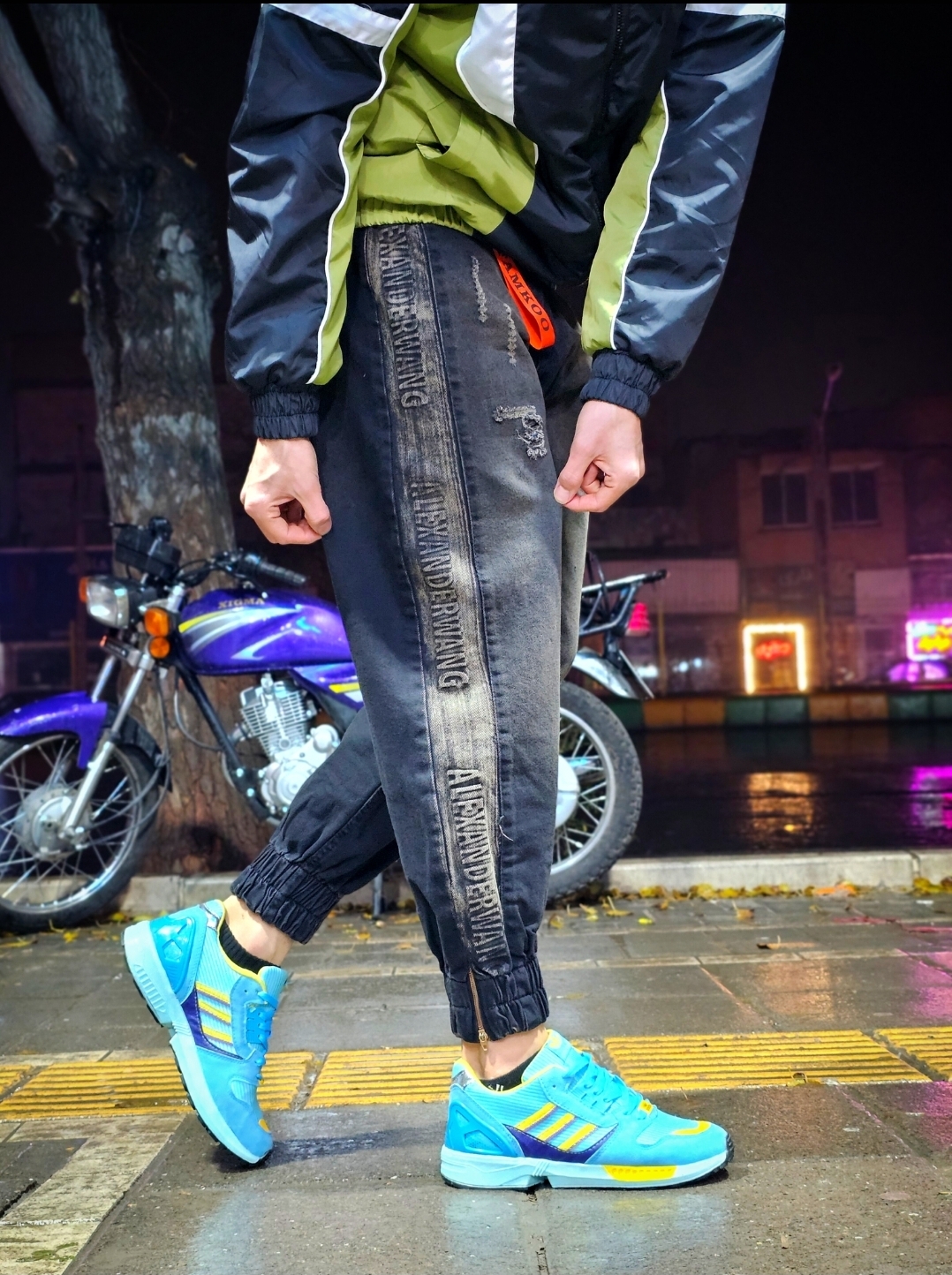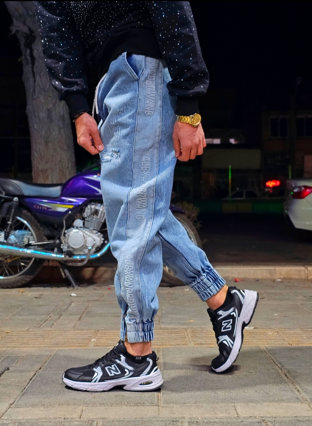 شلوار جاگر بغل داغی خور دمپا کش زیپ رنگ آبی کم رنگ