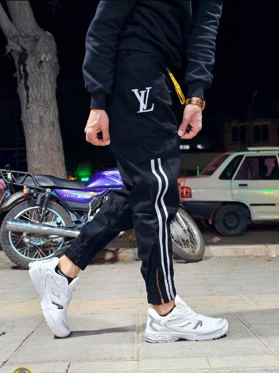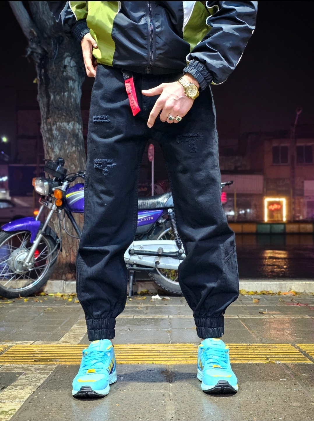 شلوار جاگر بغل داغی خور دمپا کش زیپ رنگ مشکی