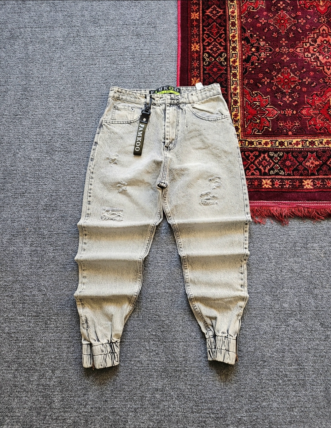 شلوار مام اسلش دمپا کش زیپ برند فامکو رنگ استخونی