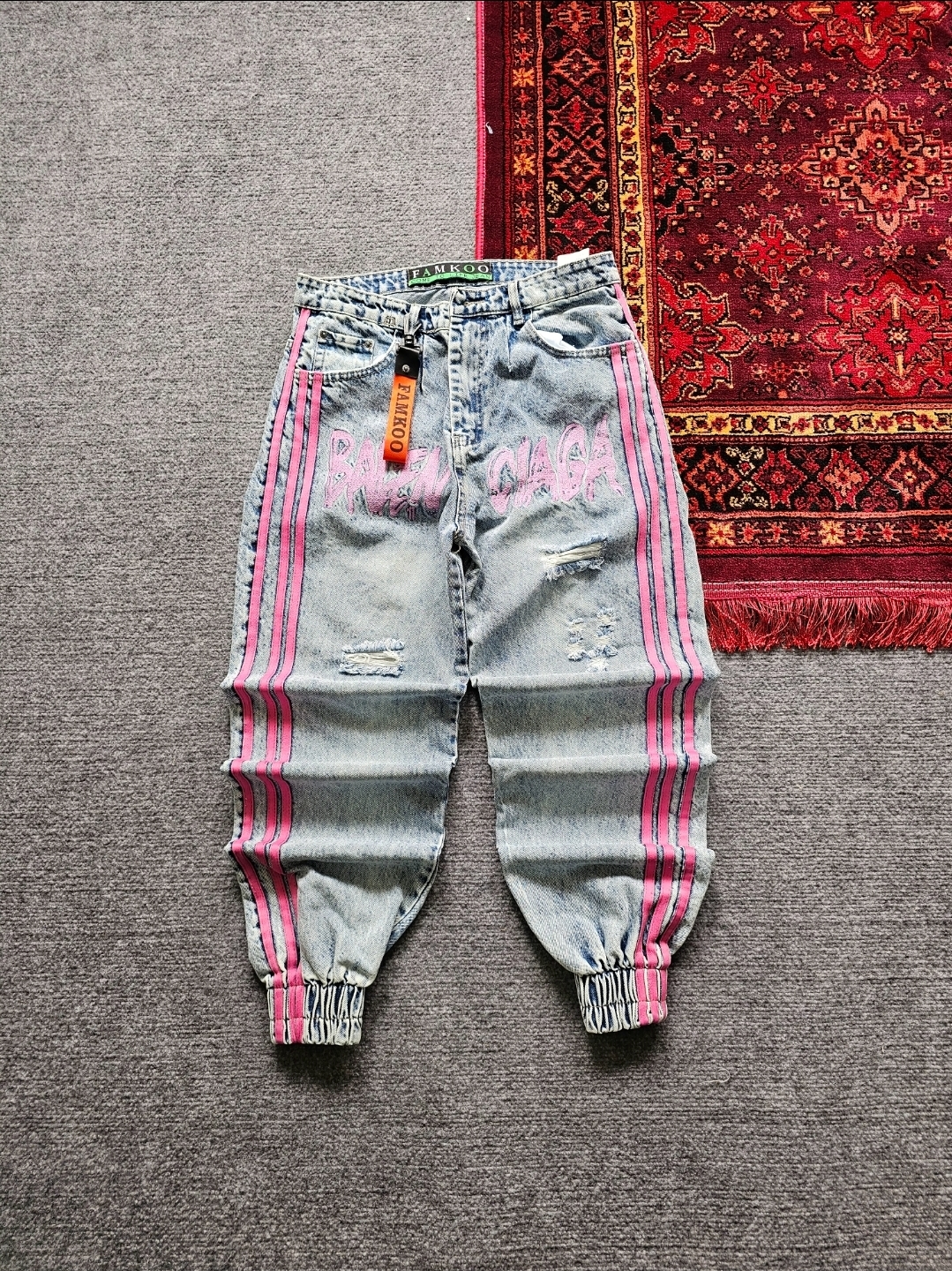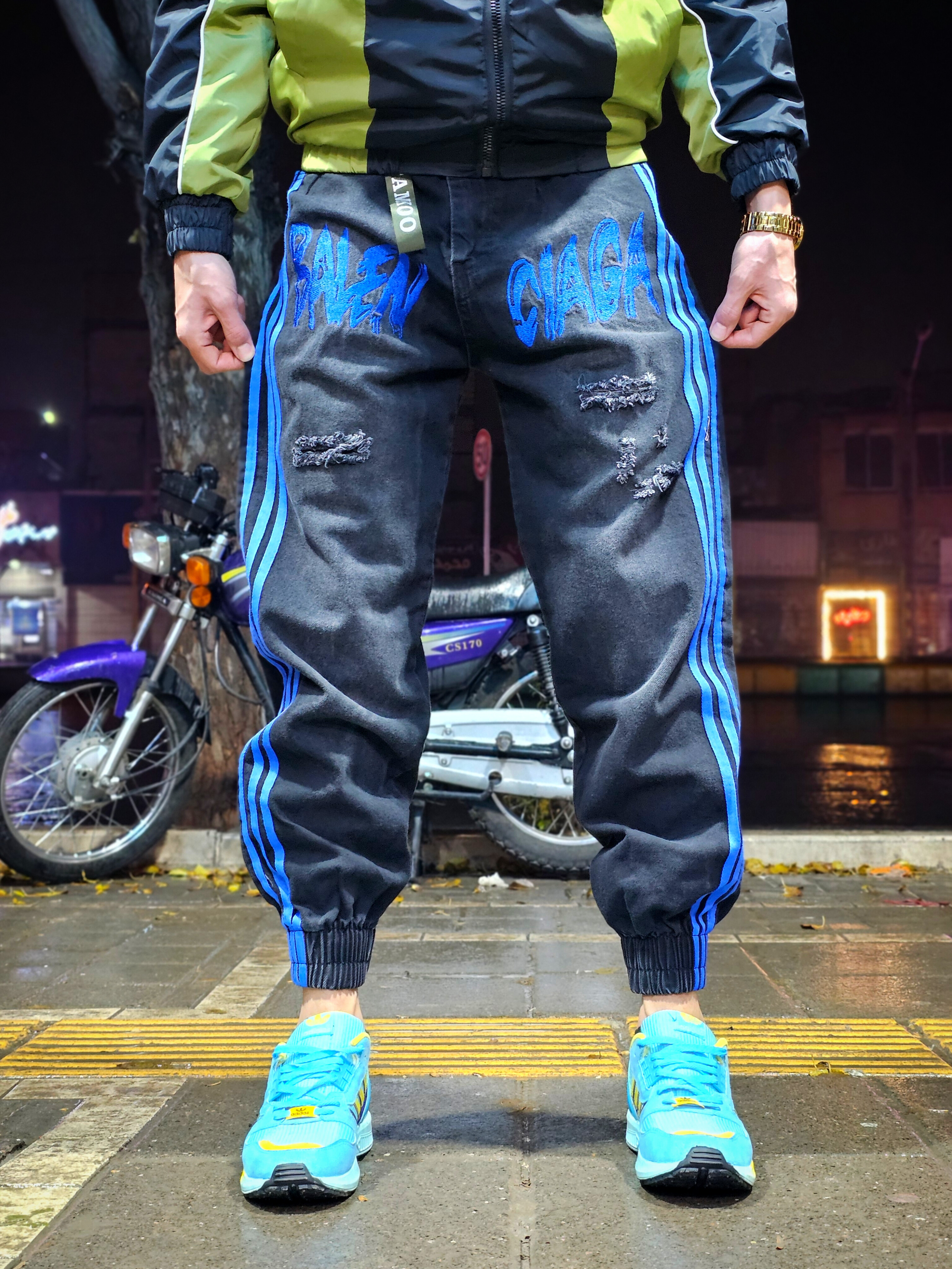 شلوار بالانسیاگا سه خط رنگ ابی خط صورتی