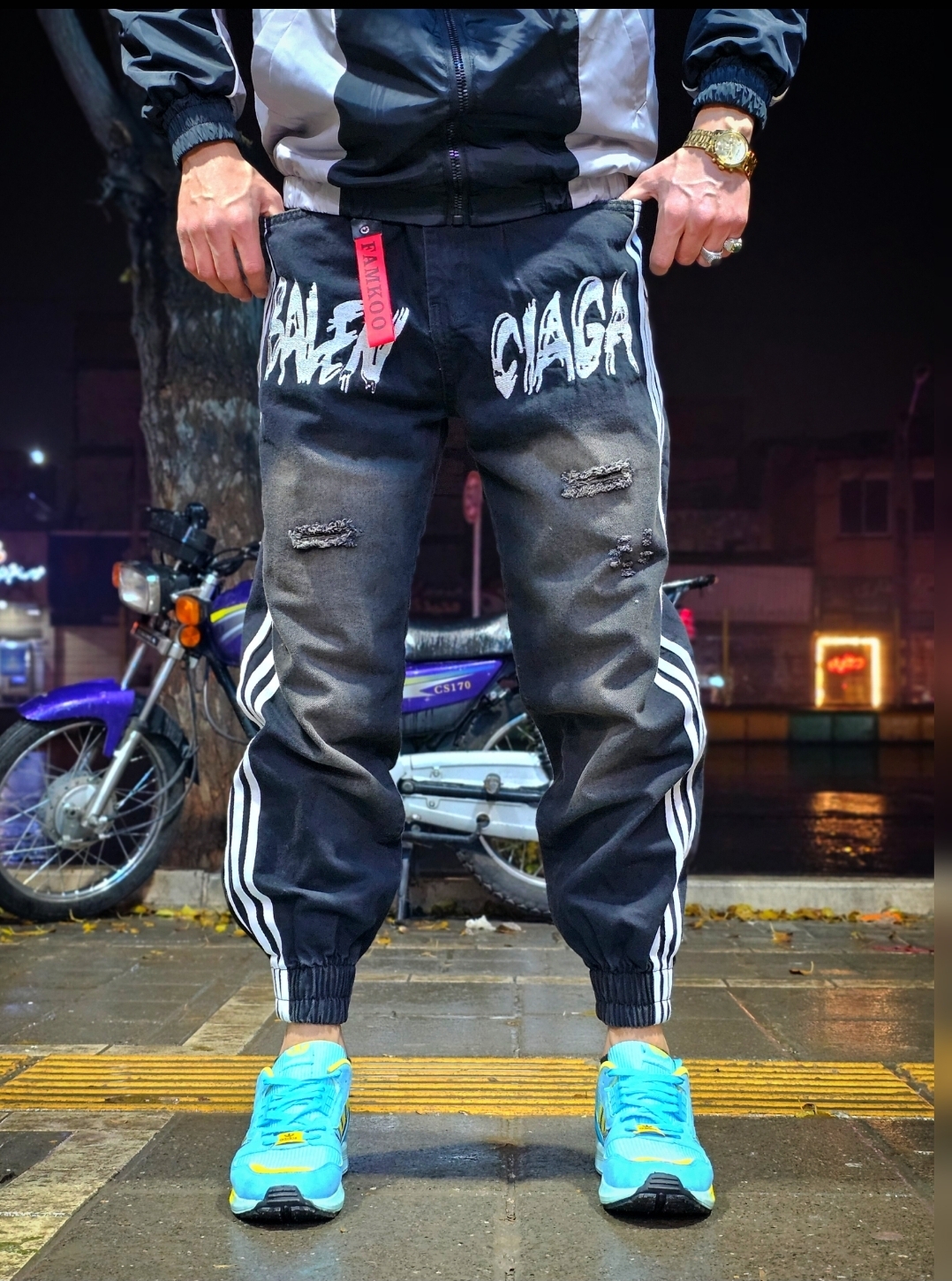 شلوار بالانسیاگا سه خط رنگ مشگی خط ابی