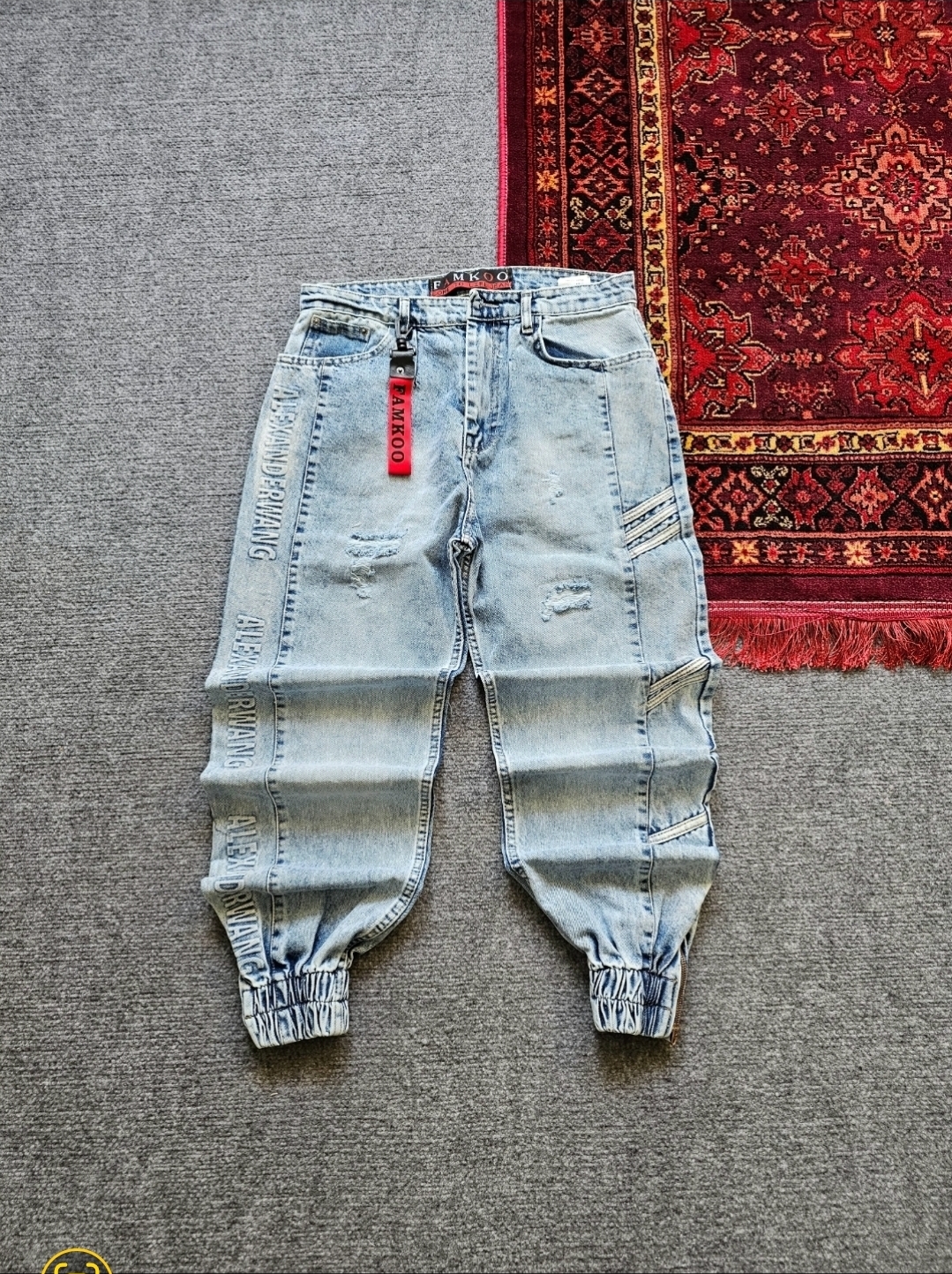 شلوار مام فیت تیکه خور گلدوزی طرح ماهی