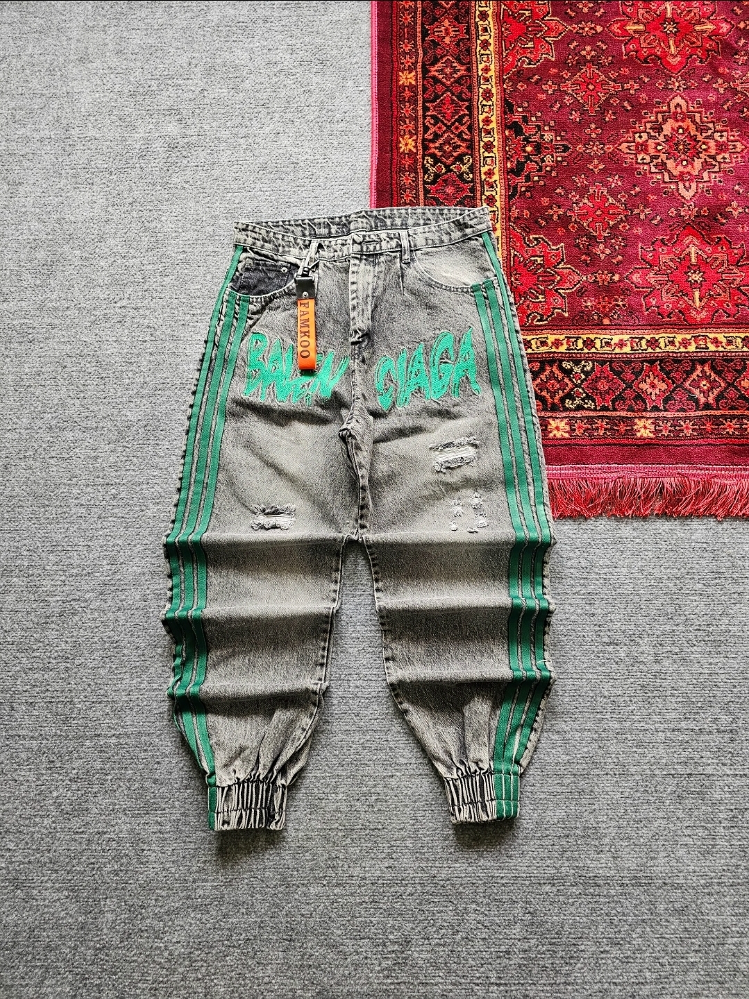 شلوار بالانسیاگا سه خط رنگ ذغالی خط سبز