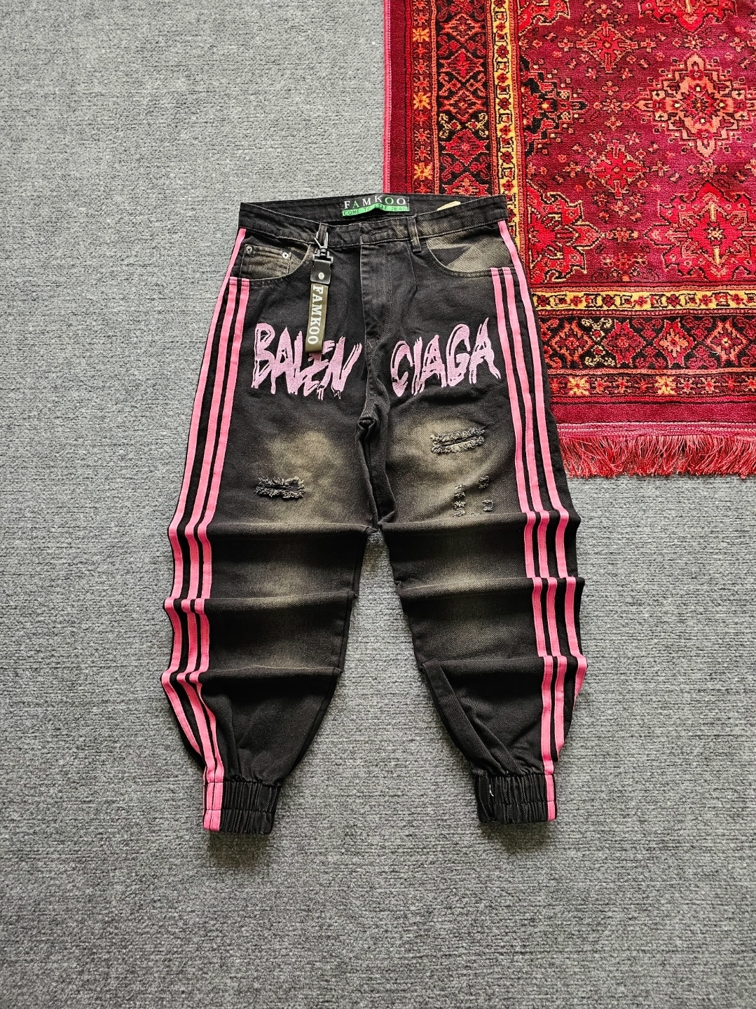 شلوار سه خط بالانسیاگا ذغالی خط صورتی