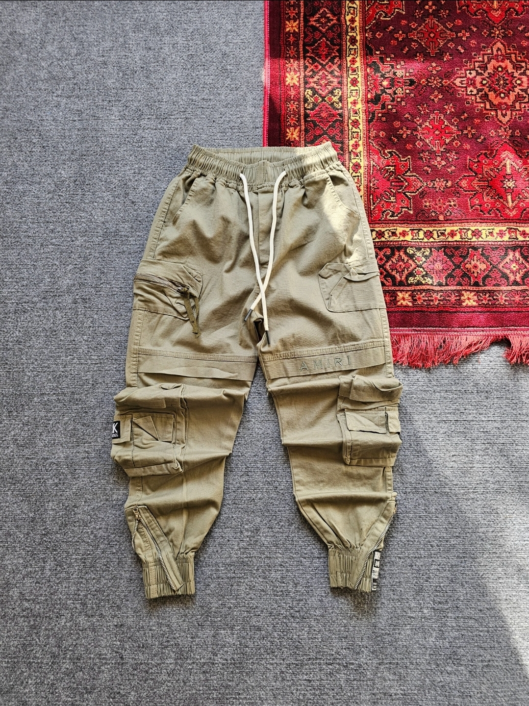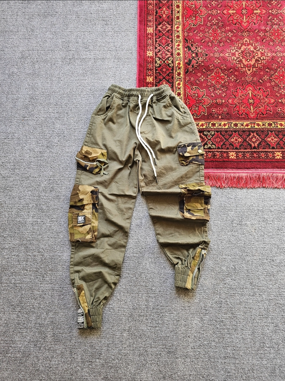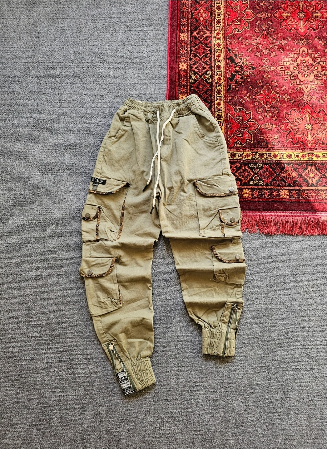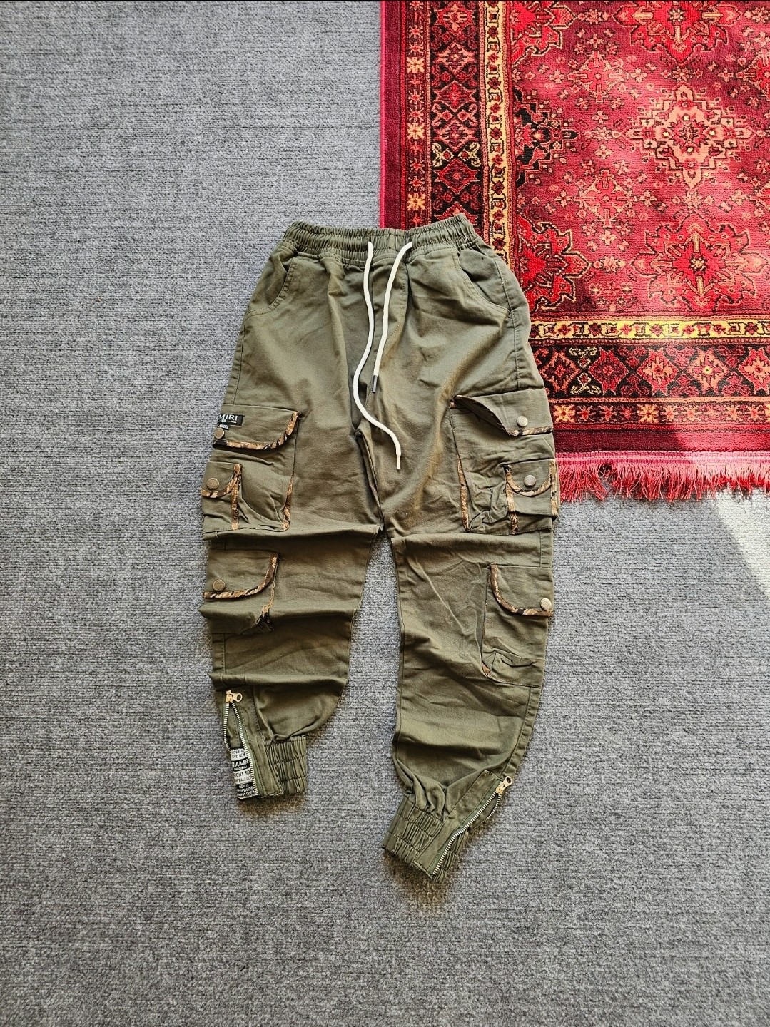 شلوار دوازده جیب رنگ سبز لنجی جیب نوار پلنگی