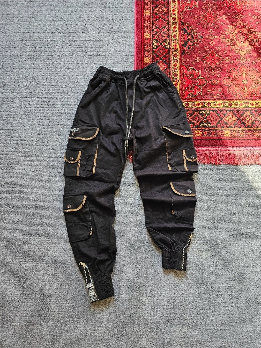 شلوار دوازده جیب رنگ مشکی جیب نوار پلنگی