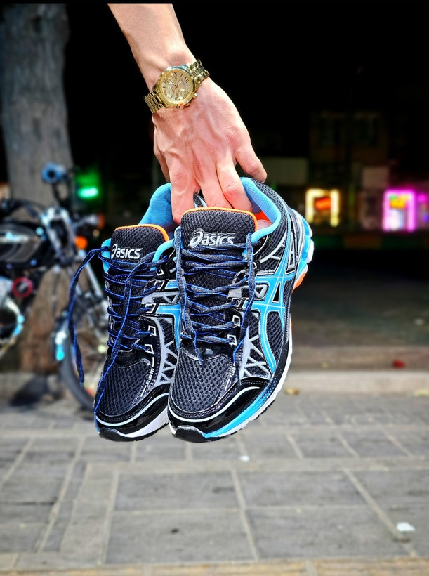 کتونی آسیکس مشکی خط آبی 💙🖤