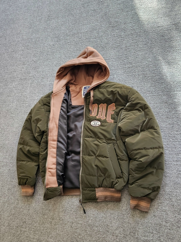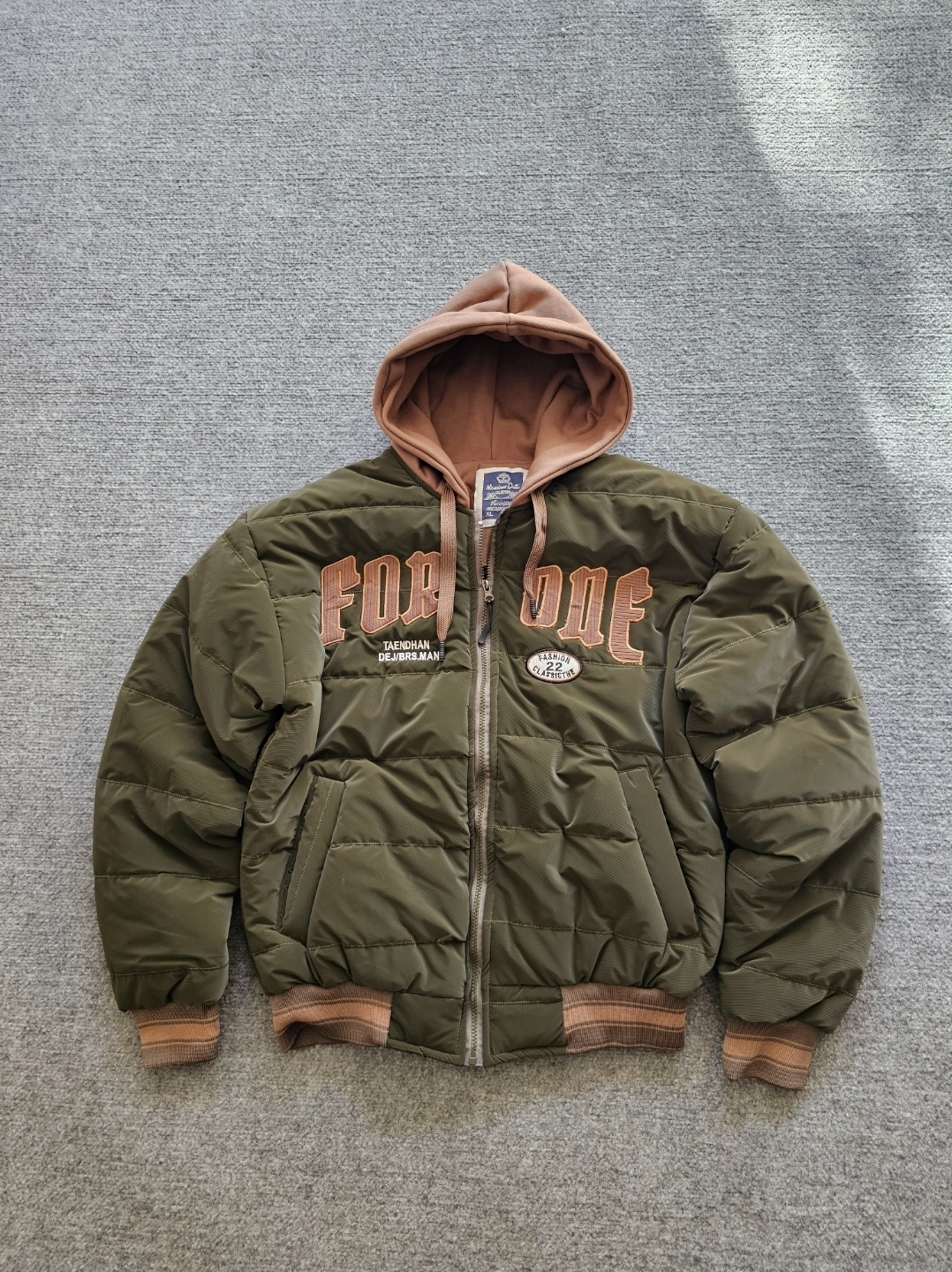کاپشن اورجینال پفکی پارچه کج راه کرم سبز