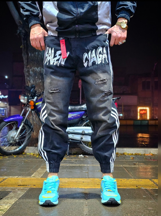 شلوار بالانسیاگا سه خط رنگ ذغالی خط سفید