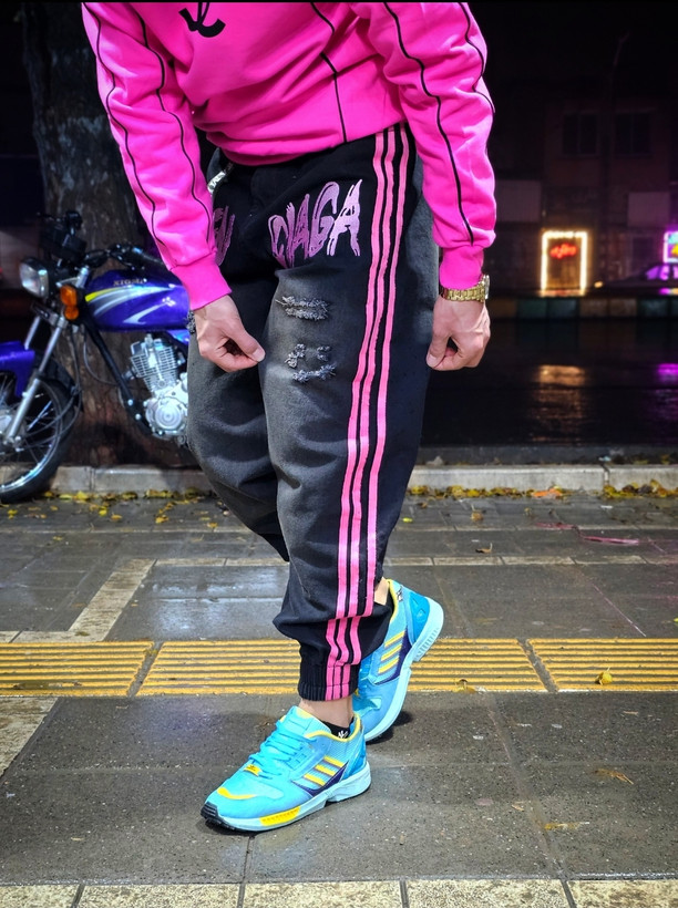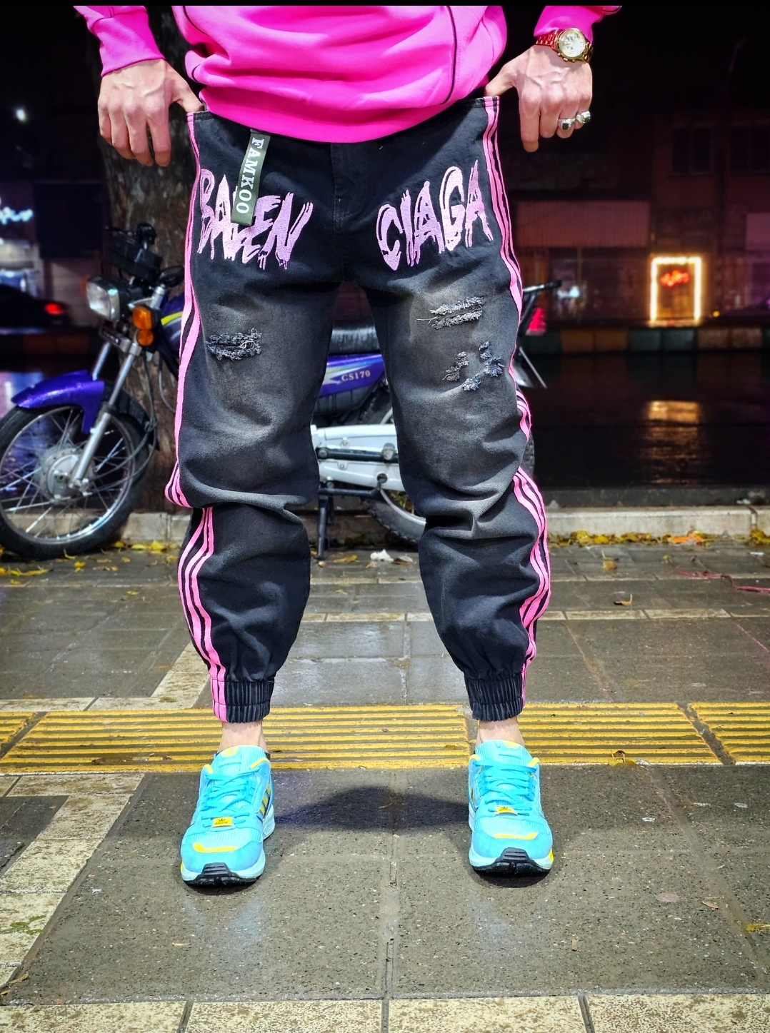 شلوار بالانسیاگا سه خط رنگ ذغالی خط صورتی