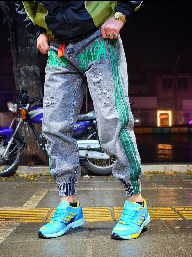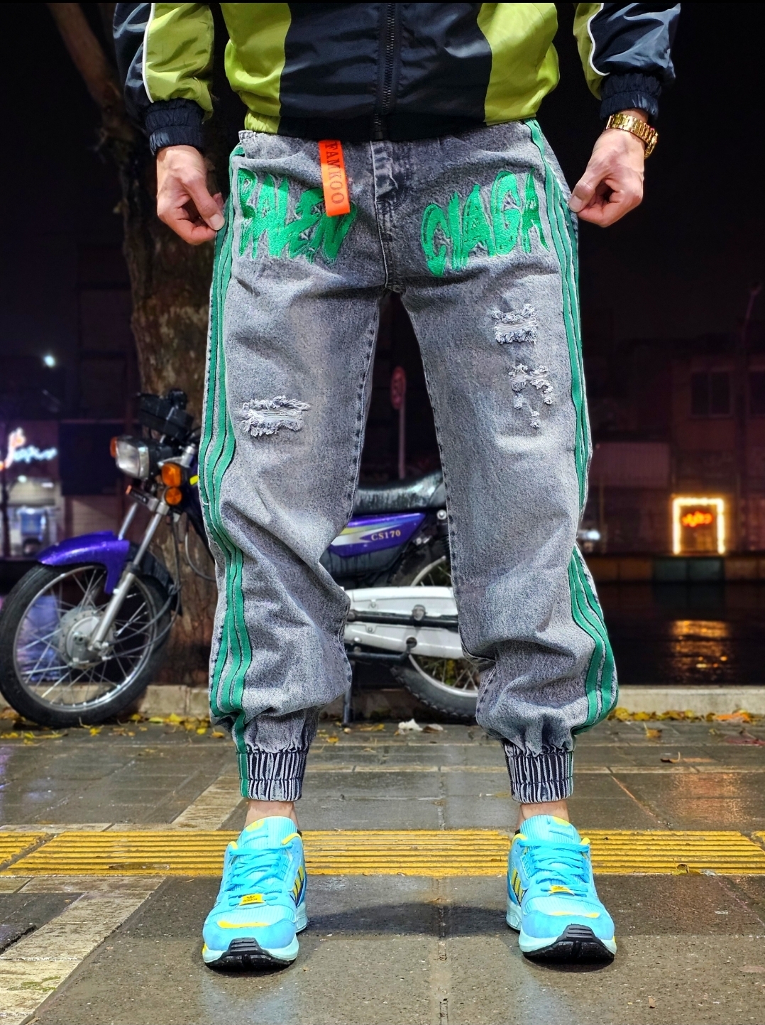 شلوار بالانسیاگا سه خط رنگ ذغالی خط سبز