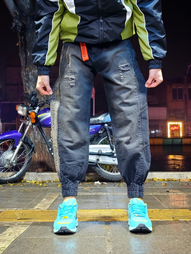 شلوار جاگر بغل داغی خور دمپا کش زیپ رنگ گازوئیلی