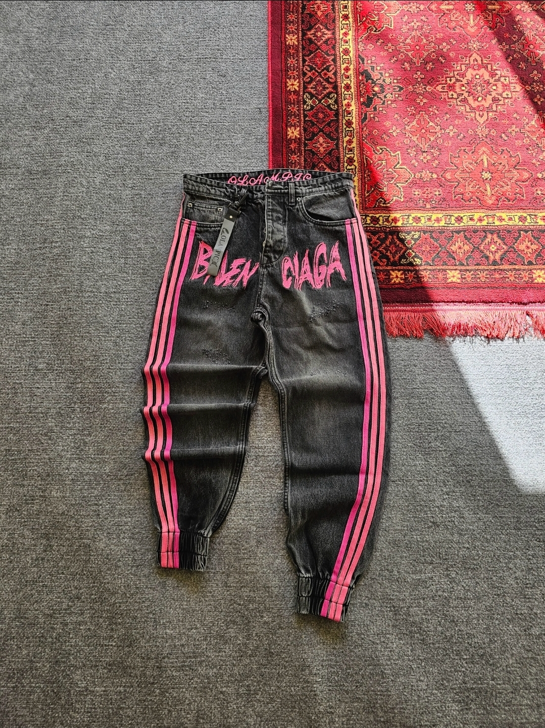 شلوار سه خط بالانسیاگا ذغالی خط صورتی